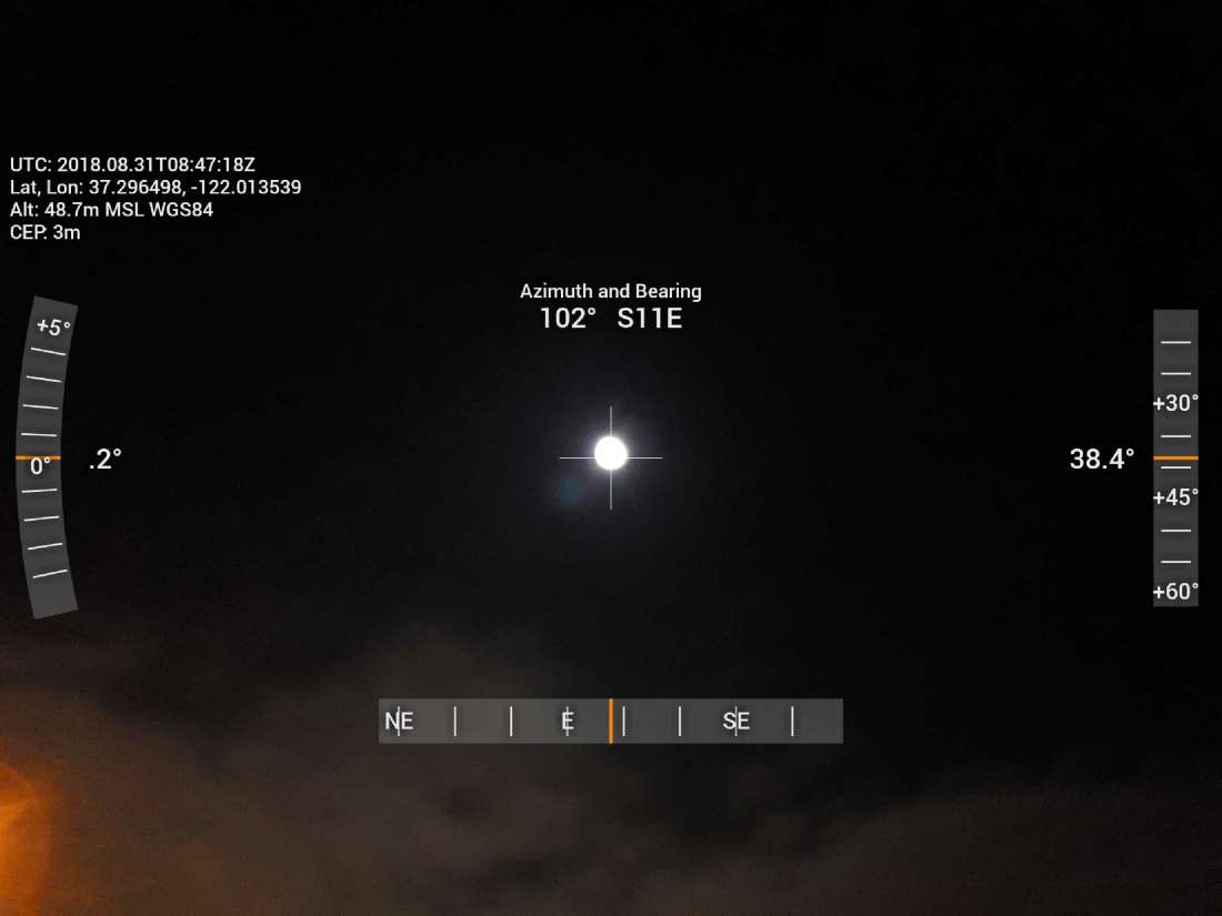 Dioptra: Azimuth 102 deg magnetic & Altitude 38.4 deg
